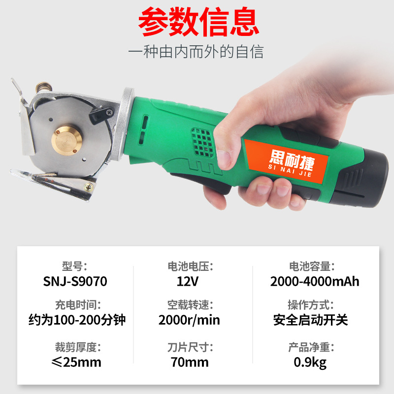 Sinaijie Electric Round Scissors Cutting Machine Cloth Cutting Machine Electric Handheld Rechargeable Round Blade High Speed Steel Lithium Electric Scissors