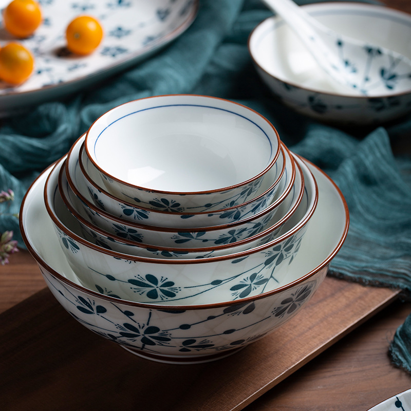 Bowl And Dish Set Household Rice Bowl Single Noodle Bowl Japanese Style Underglaze Color Soup Bowl Ceramic Bowl And Plate Tableware