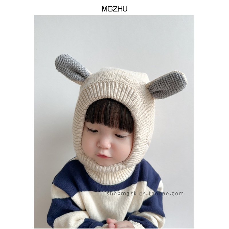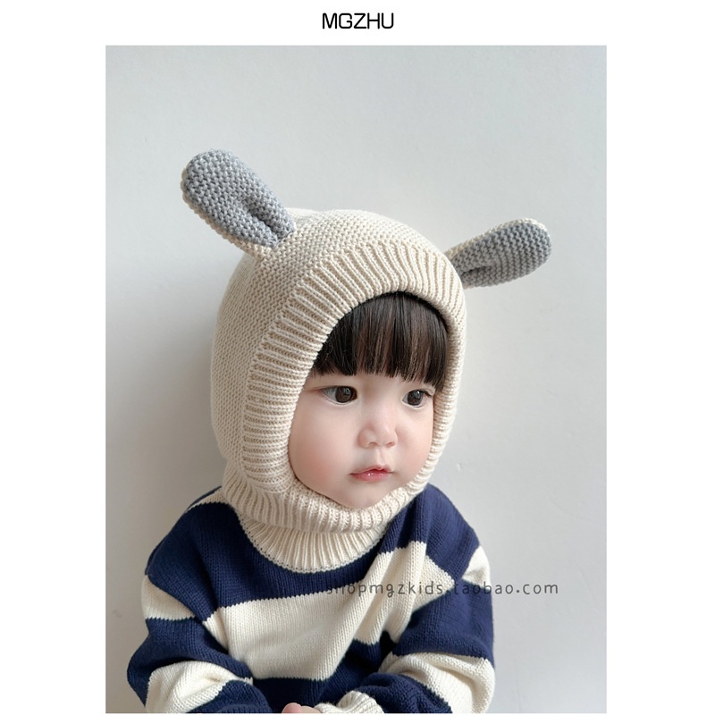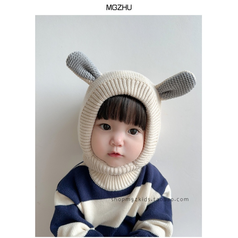 Baby Pullover Hat Scarf Integrated Autumn And Winter Velvet Thickening Warm Cute Ears Men And Women Children's Ear Protection Haty
