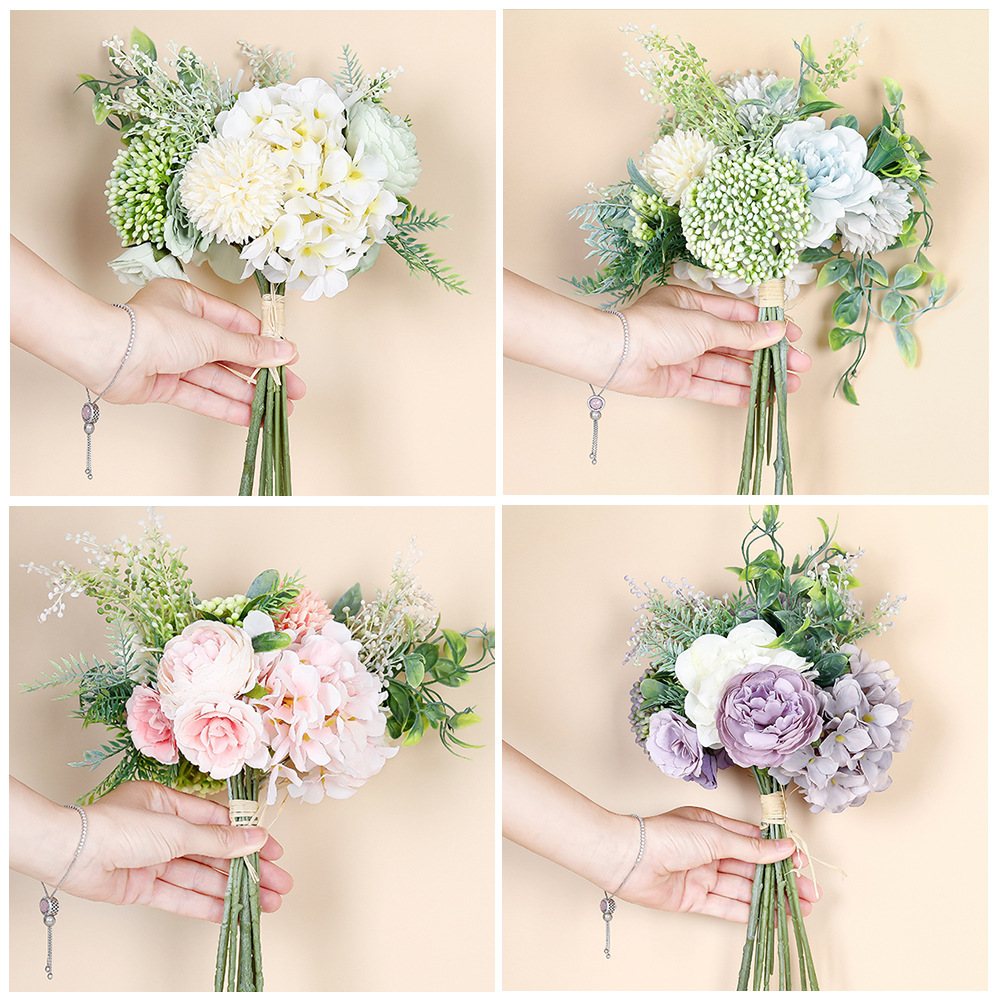 Hydrangea Bouquet Simulation Flower Plant Bonsai Wedding Decorations Style Simulation Rose Flower MW66781