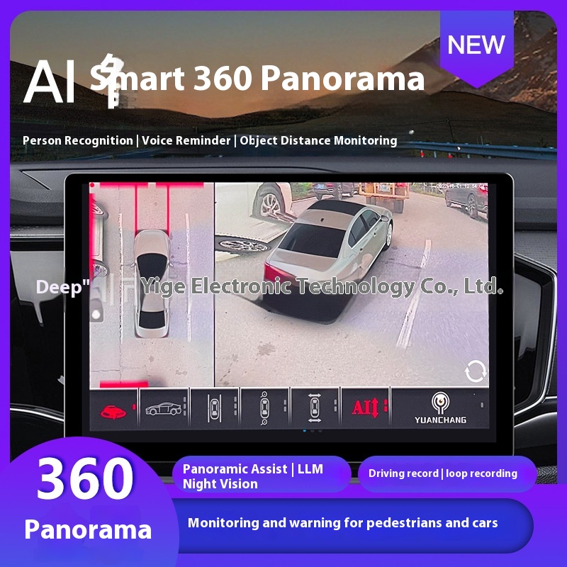 A I Intelligent360-degree Panoramic Imaging System Driving Recorder Person Recognition Voice Alarm Reversing Image