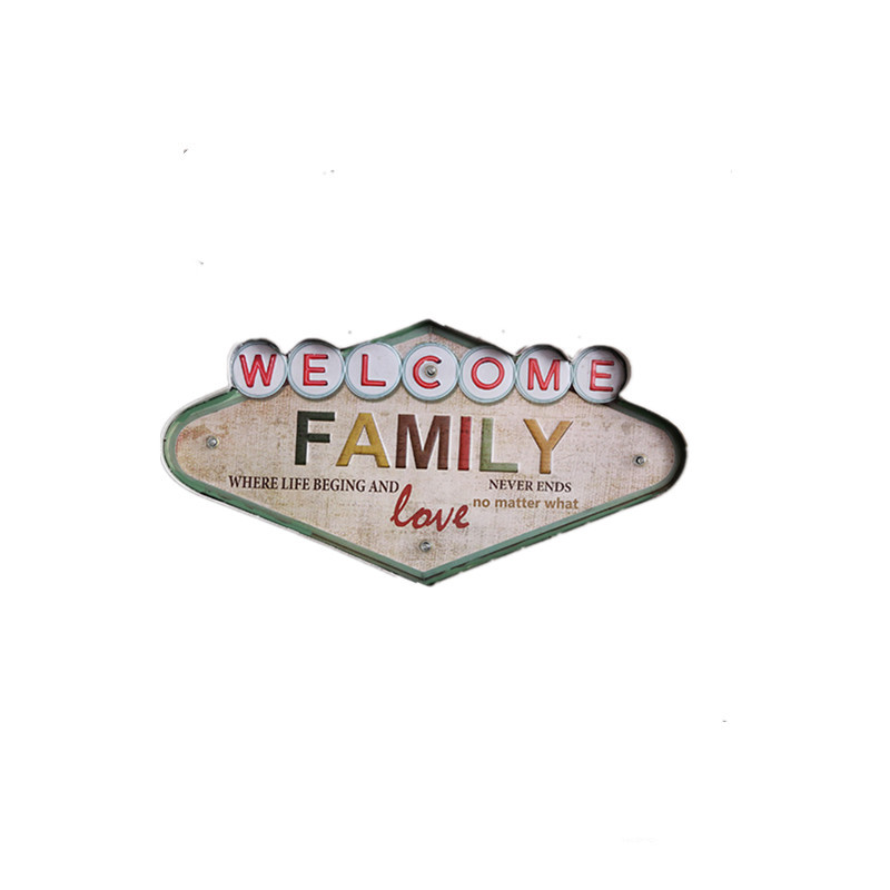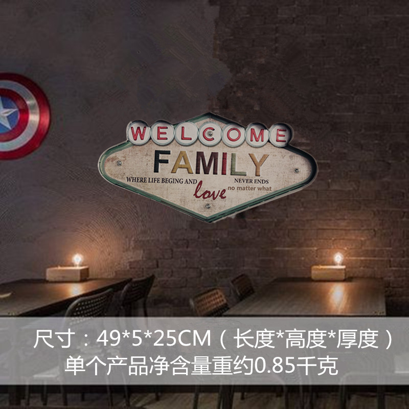 American Country Retro Iron Art LEDLight Wall Decoration FAMILYLetter Wall Hanging Personalized Decoration Iron Painting
