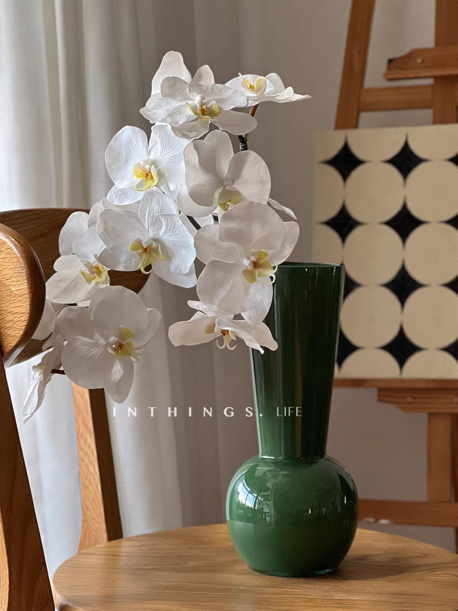 Vase High-end Light Luxury Green French Retro Model Room Decoration Ornaments Phalaenopsis Orchid Vase