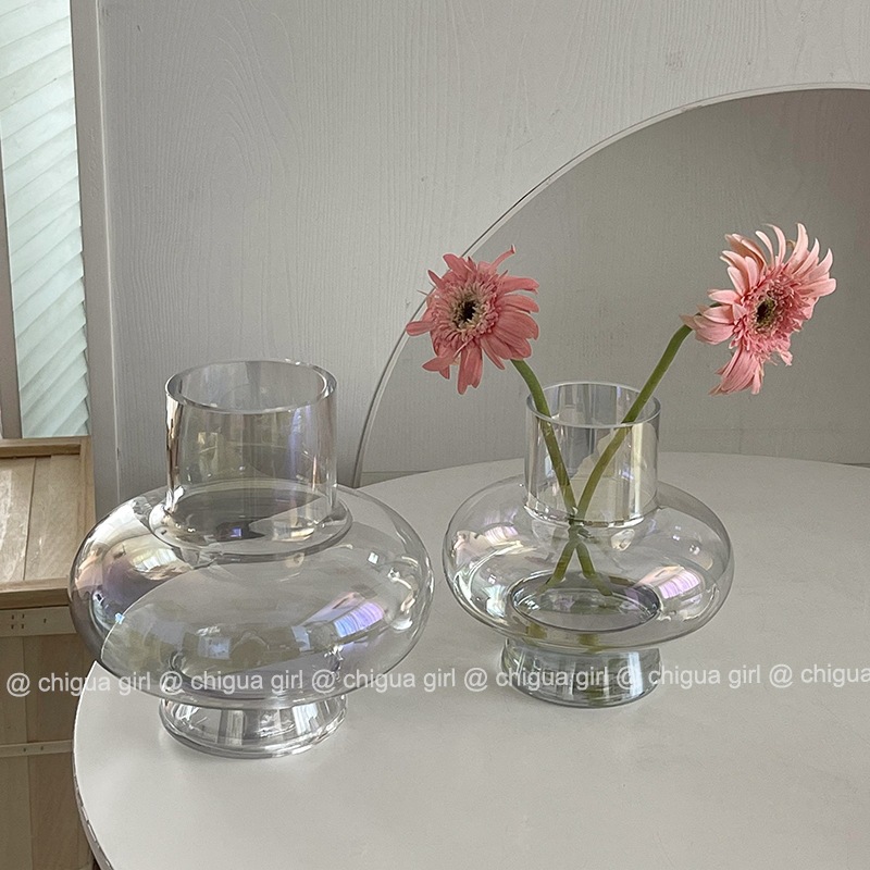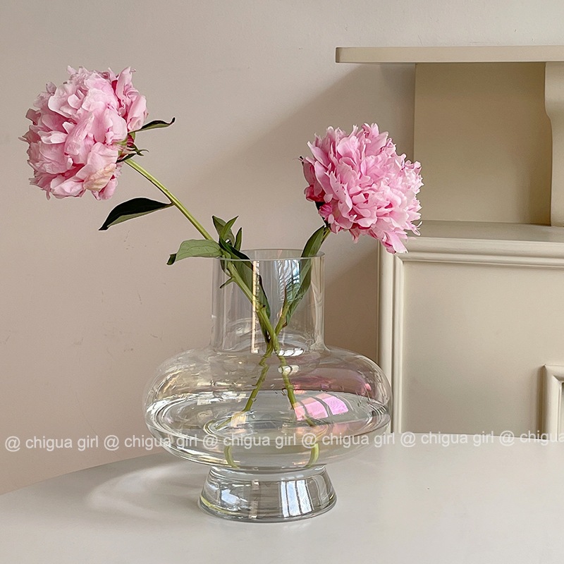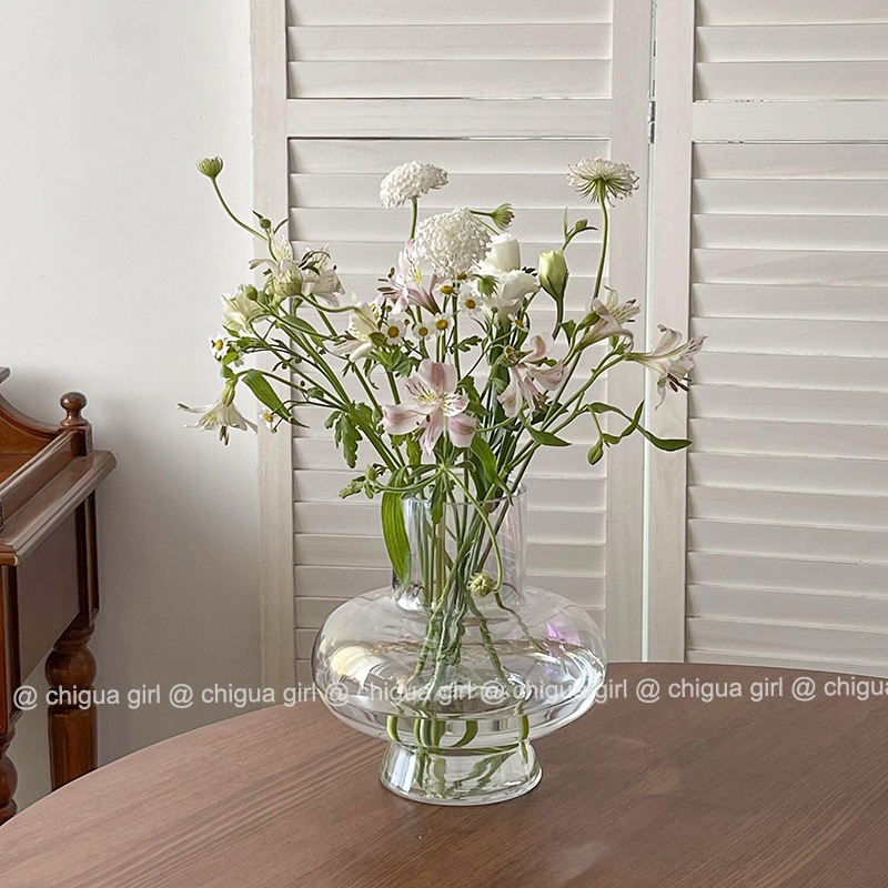 Style Simple Big Belly Light Luxury Lantern Vase Glass High-end Transparent Hydroponic Flower Arrangement Living Room Decoration Ornaments