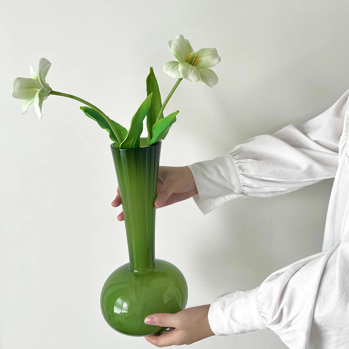 French Medieval Swan-neck Glazed Vase,High-end OGreen Living Room Flower Arrangement,Simulated Flower Decoration Ornaments