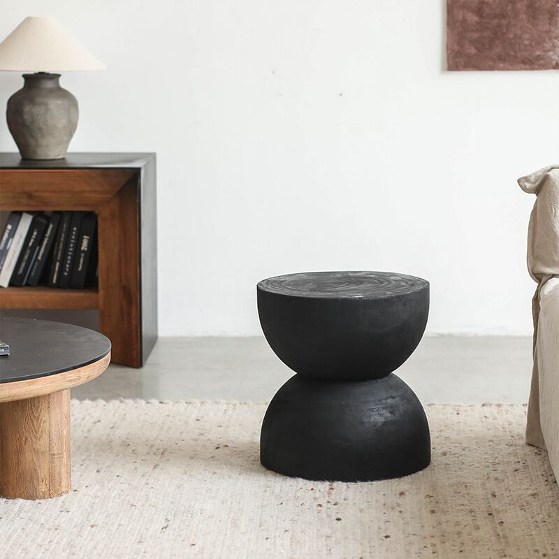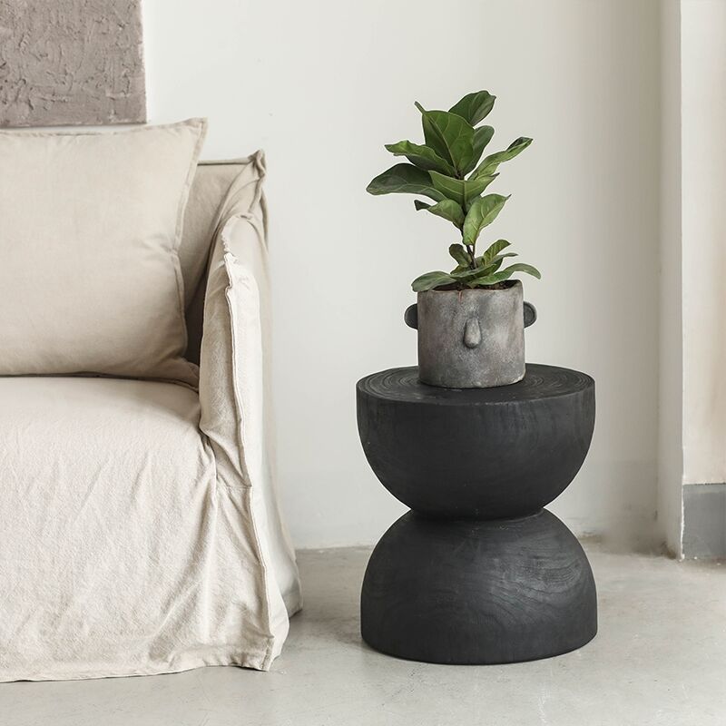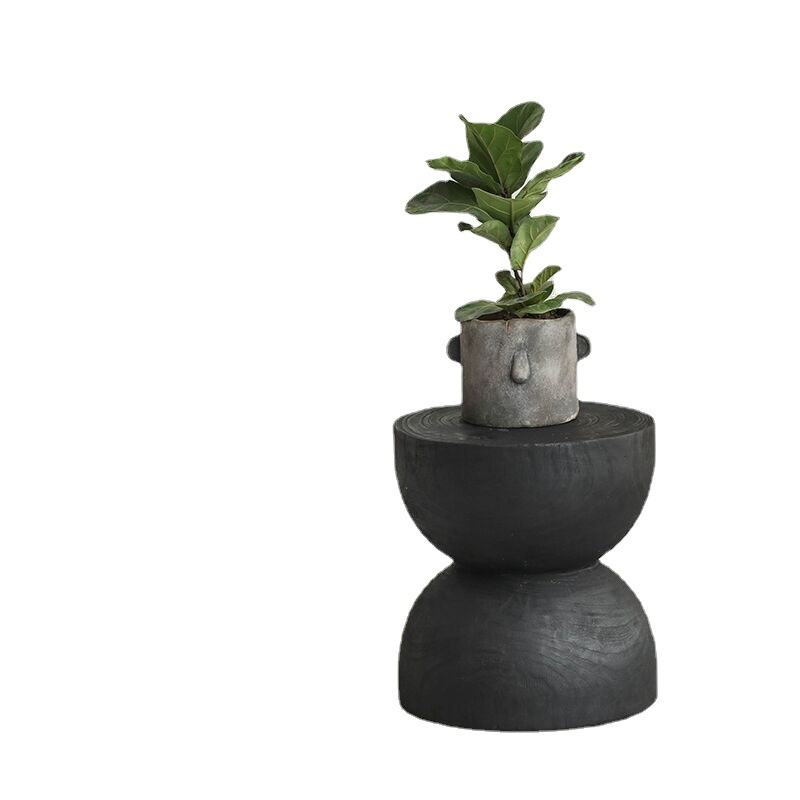 Wabi-sabi Style Charcoal Black Funnel-shaped Small Side Table B&BDecorative Stool Retro Living Room Solid Wood Creative Sofa Coffee Table