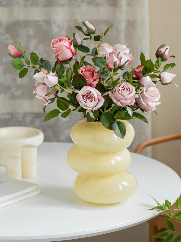 Medieval Vase Ornaments Glass Flower Arrangement Water Nourishing High-end Living Room Cream Style Table Decorations