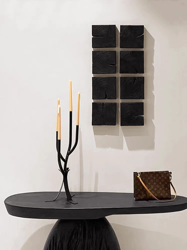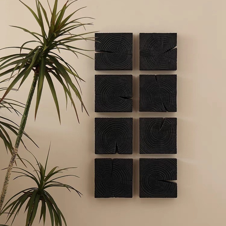 Lily White Carbonized Wood Block Wabi-sabi Style Art Pendant Wall Decoration Wall Decoration Home Retro Entrance Wall Decoration