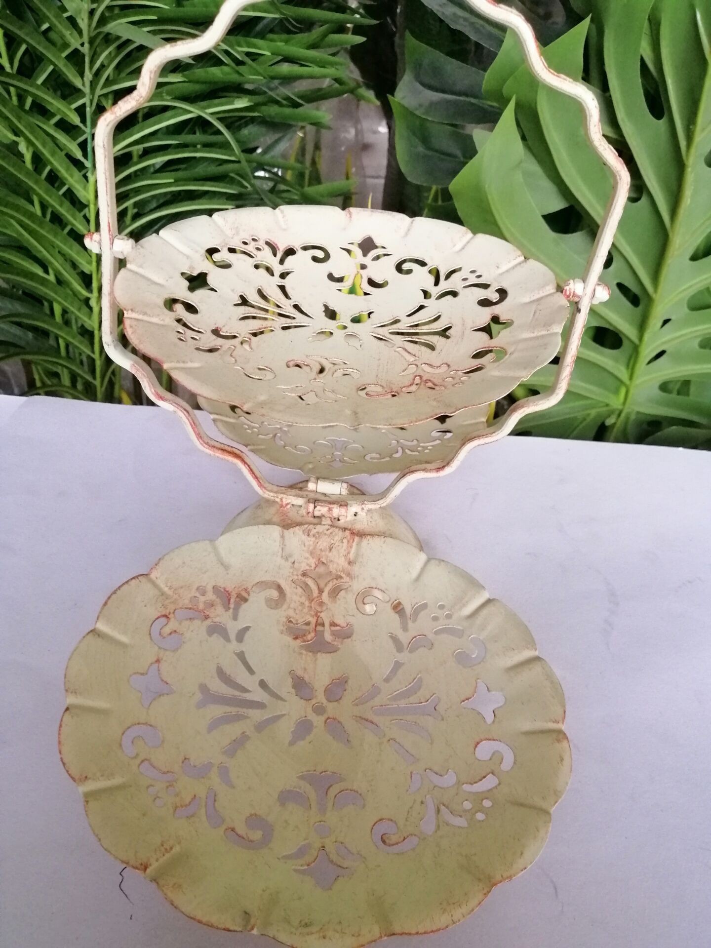 Clearance!American Country Hollow Old Fruit Plate Decorative Plate Living Room Decoration Foldable