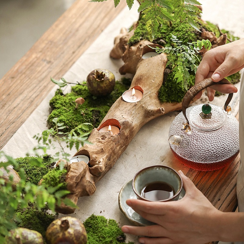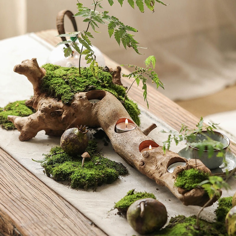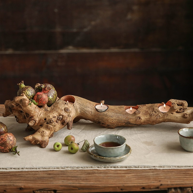 Four Grids Of Retro Candlesticks Carved From The Roots Of Old Trees,Natural Shapes,Zen Living Room Tea Table Decorations,Wabi-sabi Style Ornaments