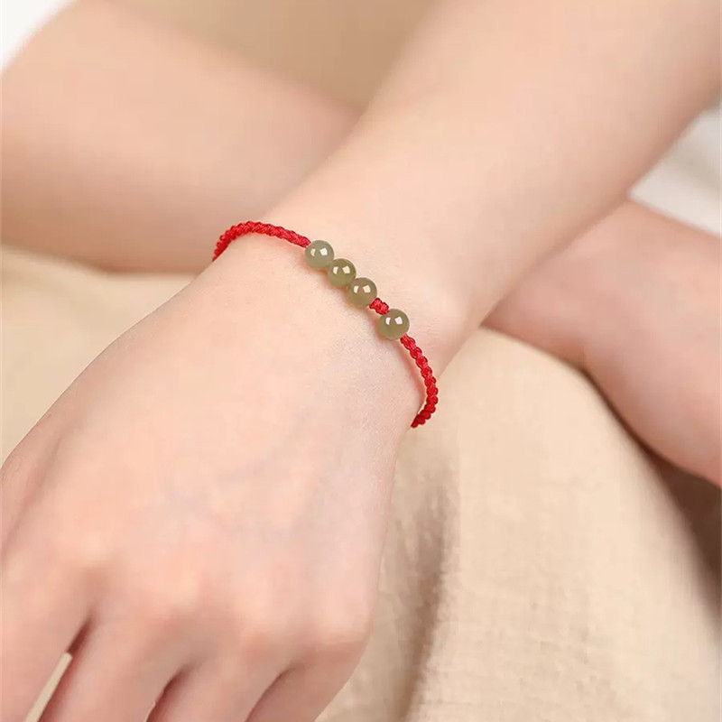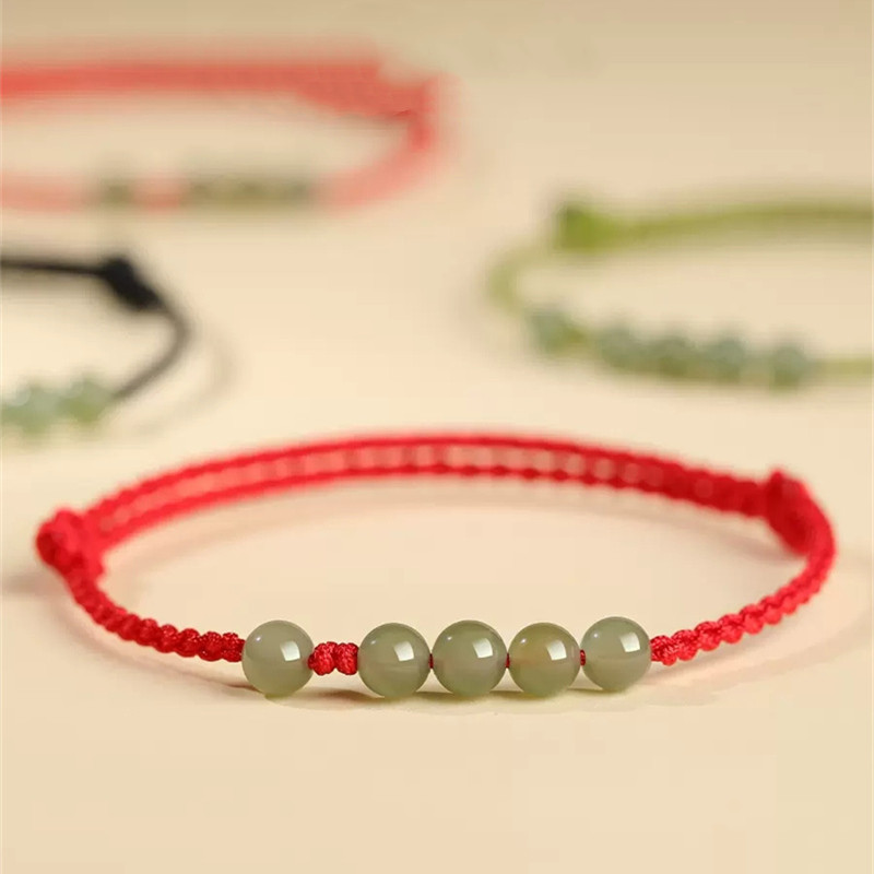 Hetian Jade Couple Style Hand-woven Red And Black Rope Fashion Simple And Attractive Single Circle Thin Bracelet As Gift