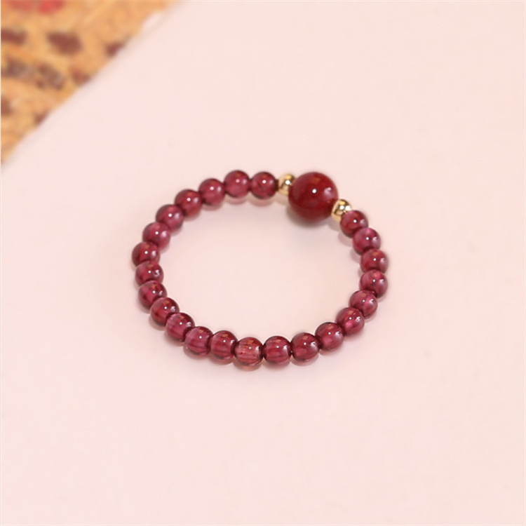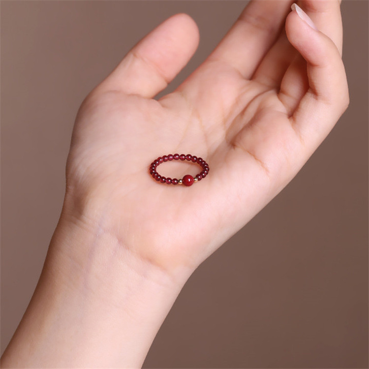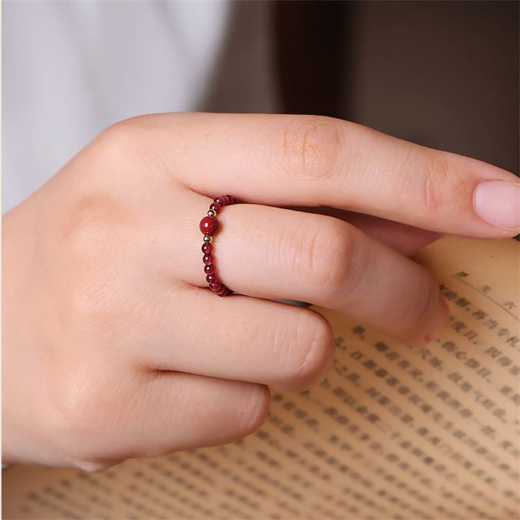 Natural Garnet Diy Design Simple Women's Ring Handmade Beaded Cinnabar Jewelry