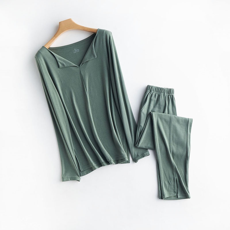 Pajamas For Women In Autumn And Winter Double-thin German Velvet Home Wear Set For Women Warm And Stylish Lapel Tops With Slit Trousers