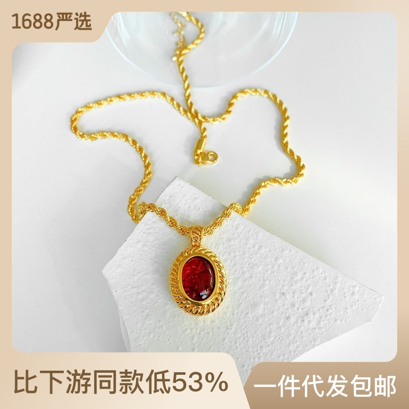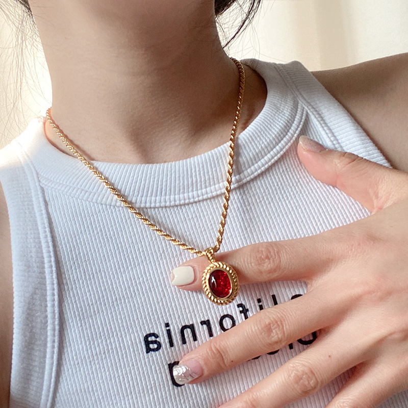 European And American Retro Simple Sparkling Gemstone Twist Necklace Women's High-end French Light Luxury Versatile Exquisite Snake Chain