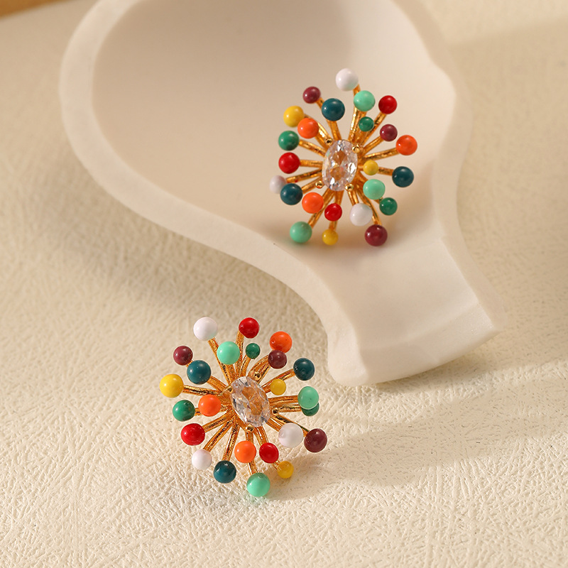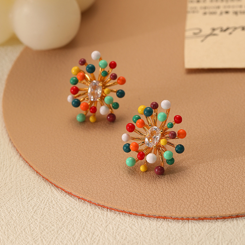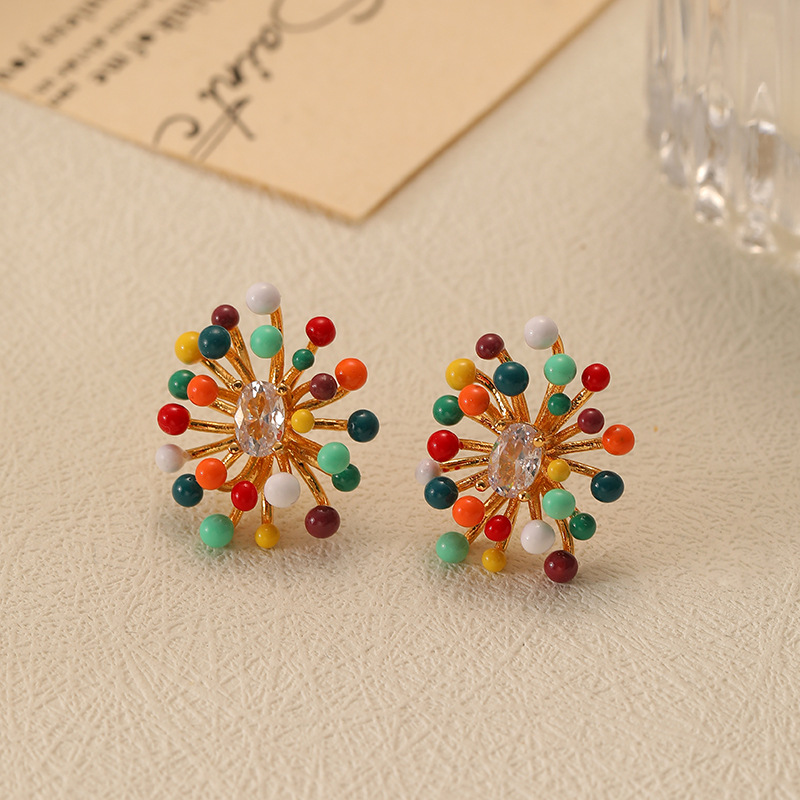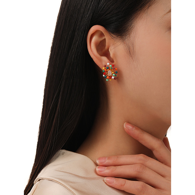 Original Autumn And Winter Color Oil Drop Flower Earrings Simple Personality Versatile Fashionable Silver Needle High-end Earrings Earrings