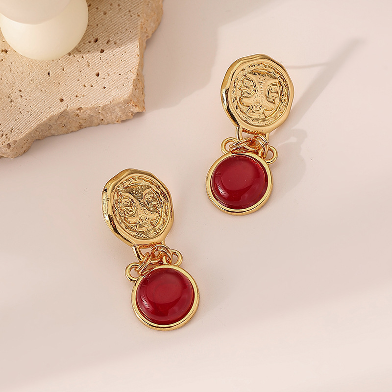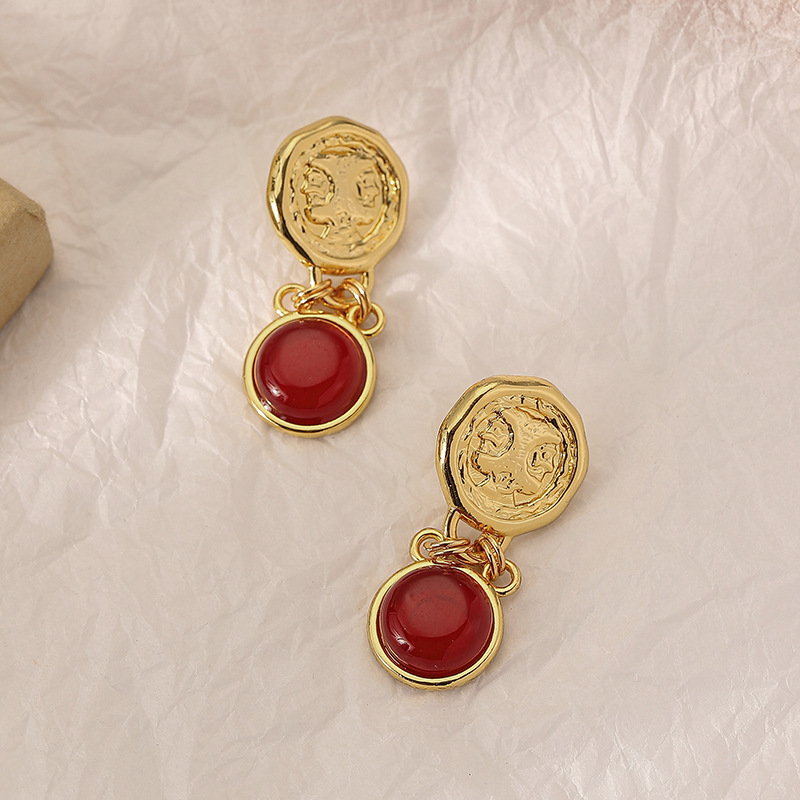 French Retro Ruby High-end Coin Silver Needle Earrings Exquisite And High-end Temperament Middle-aged Vintage Earrings