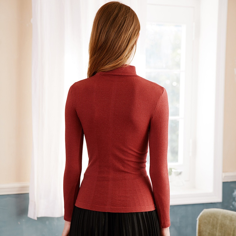 Autumn And Winter Thermal Underwear Women's Half Turtleneck Bottoming Top Slim Long-sleeved Ribbed Autumn Coat