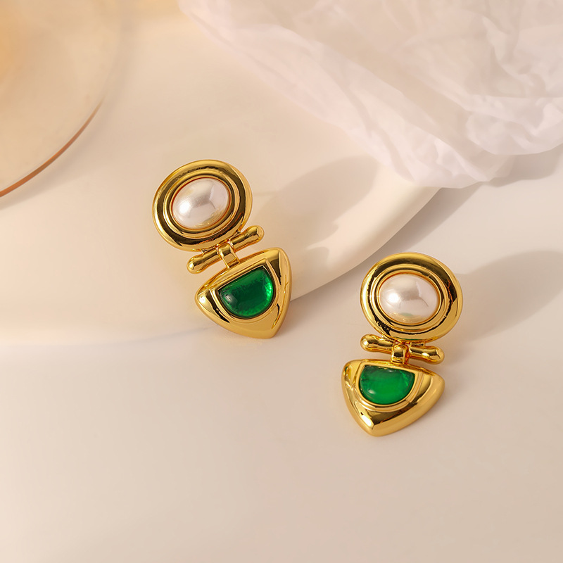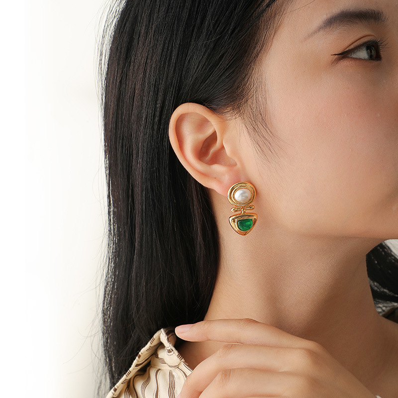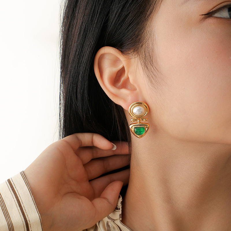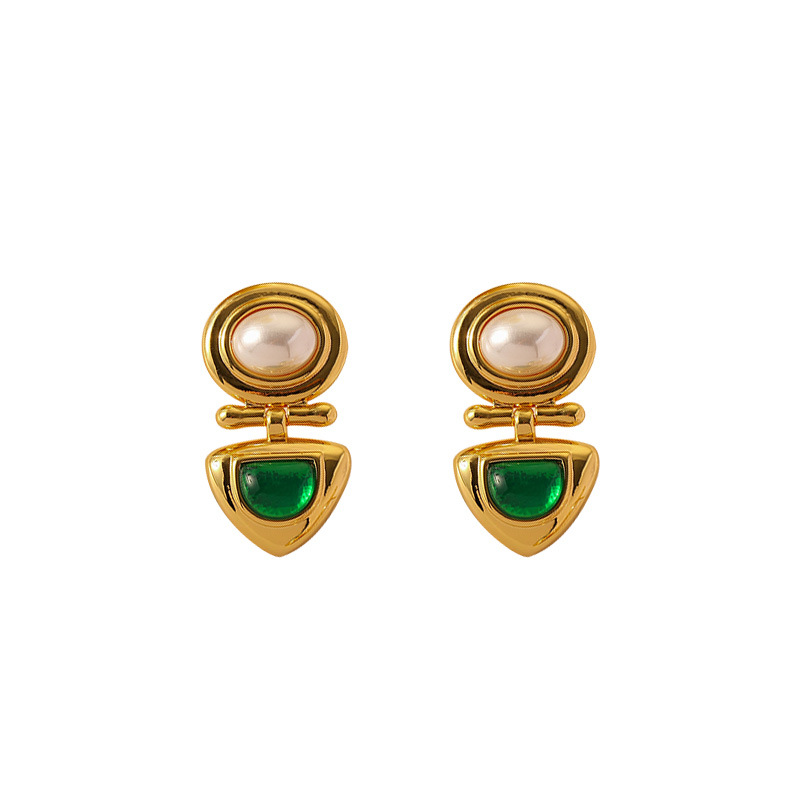 French Retro Palace Style Emerald Pearl Earrings,High-end Temperament,Middle-aged Vintage Silver Needle Earrings For Women