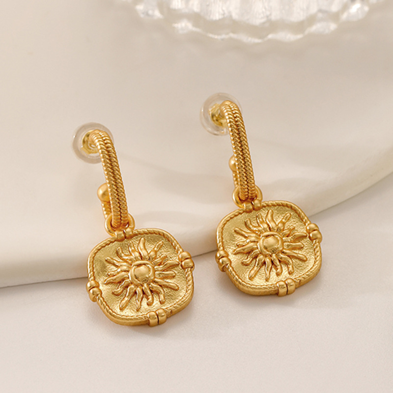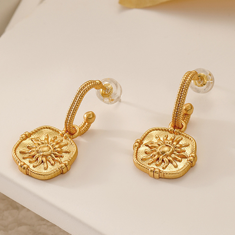 French Retro Matte Sunflower Silver Needle Earrings High-end Light Luxury Exquisite Temperament Second-hand Jewelry