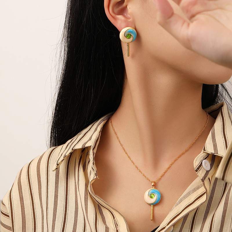 Light Luxury And High-end Lollipop Oil Drop Earrings For Women Niche Design S925 Silver Needle Sweet Personality Fashion Necklace