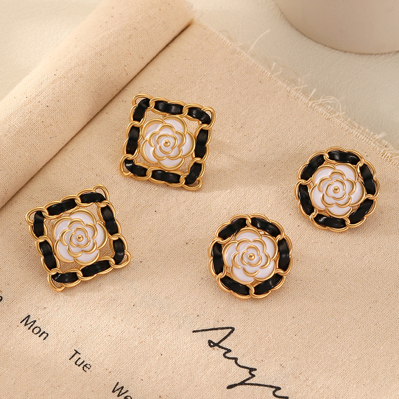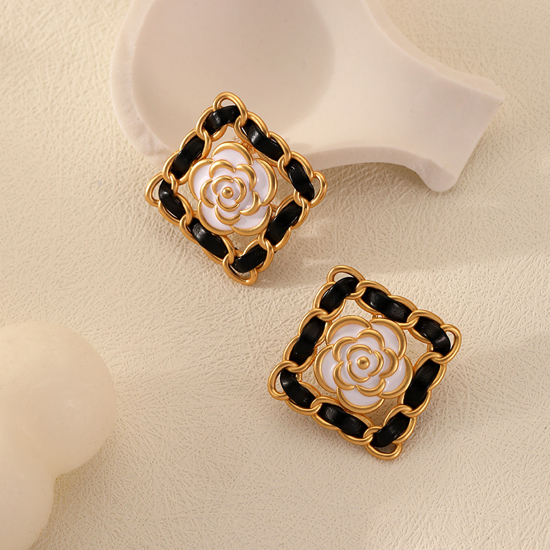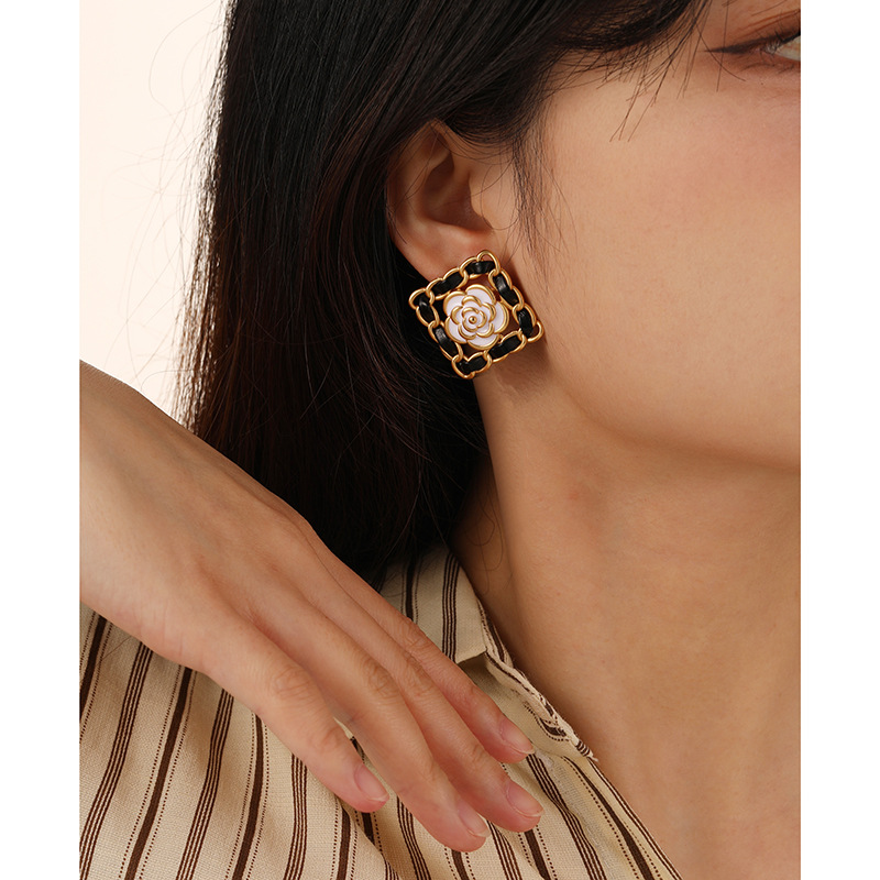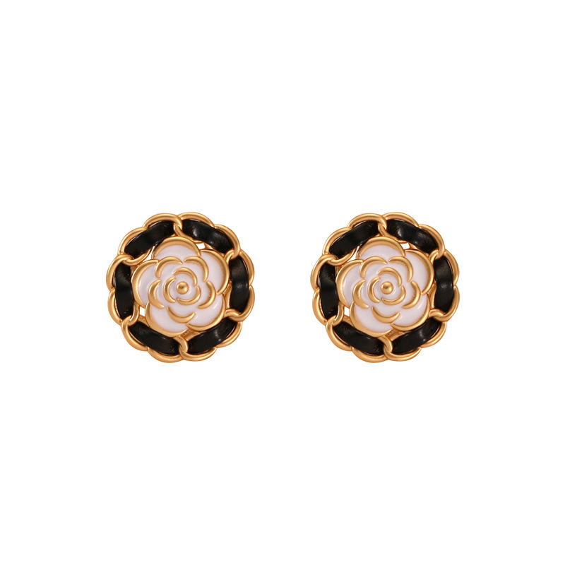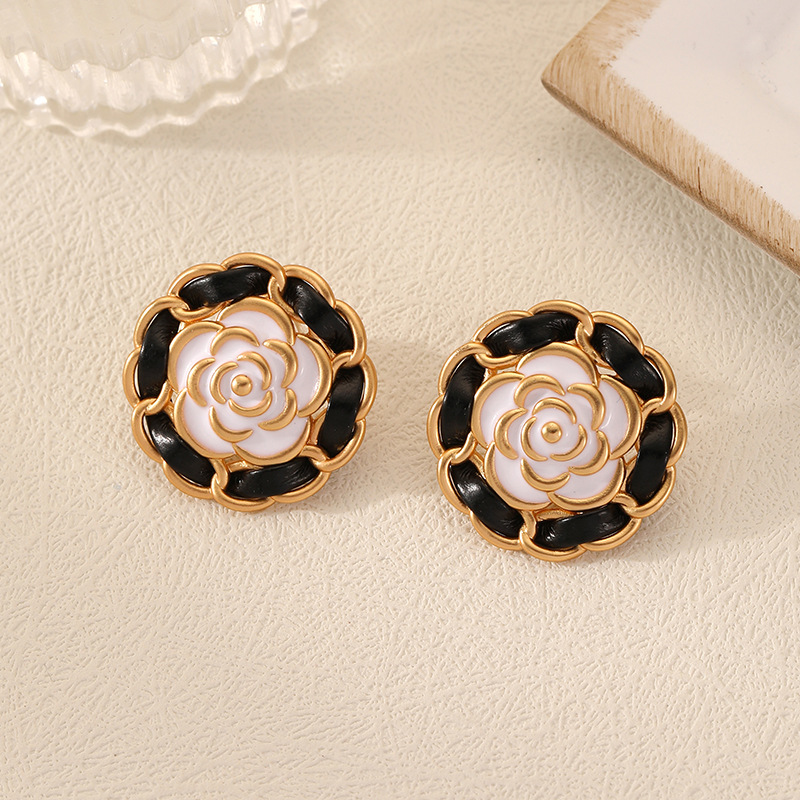 Original Small Fragrance Black Camellia Oil Drop Earrings Silver Needle High-end Niche Light Luxury Exaggerated Middle-aged Earrings For Women