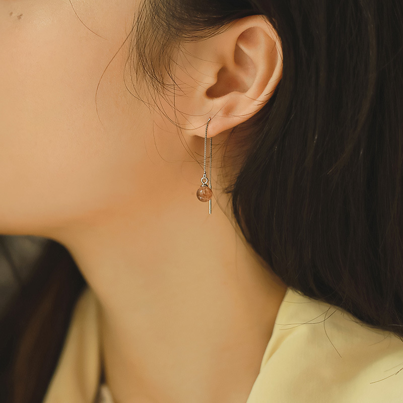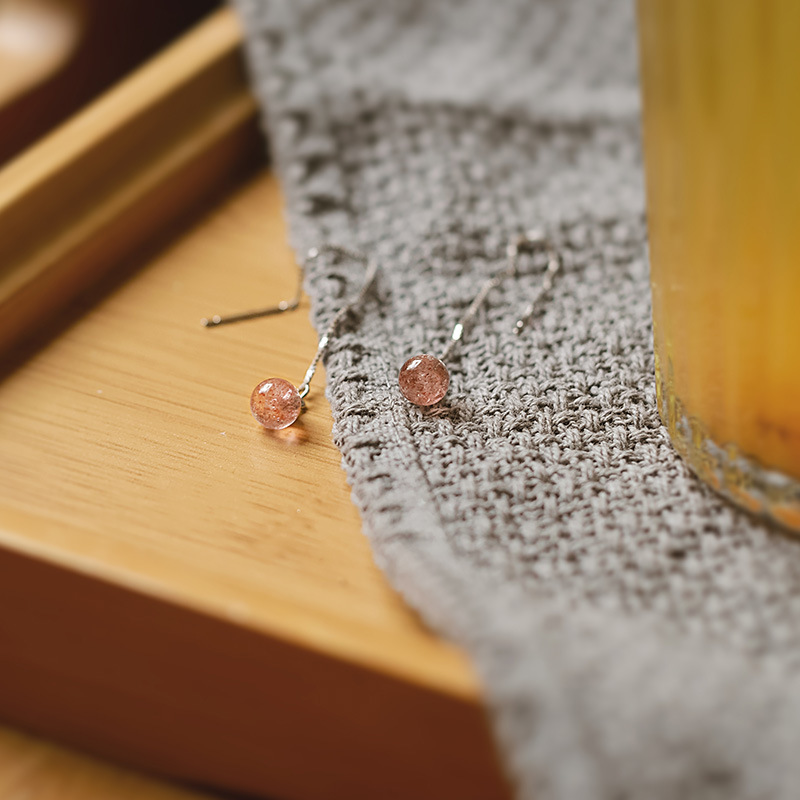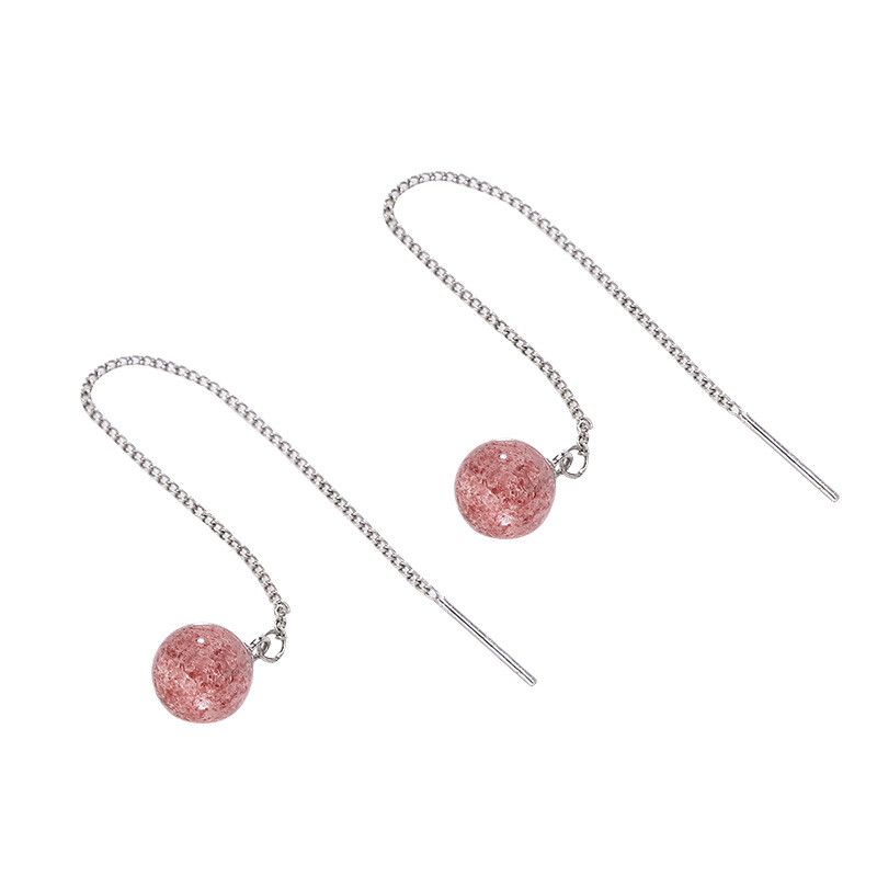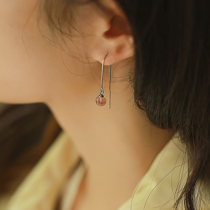 Qiaoen Natural Strawberry Crystal Ear Wire Women's Long S925 Sterling Silver Temperament Small Fresh Korean Style Sweet Earrings Earrings