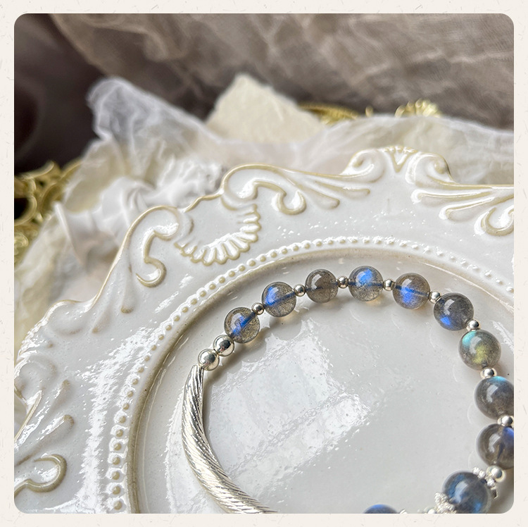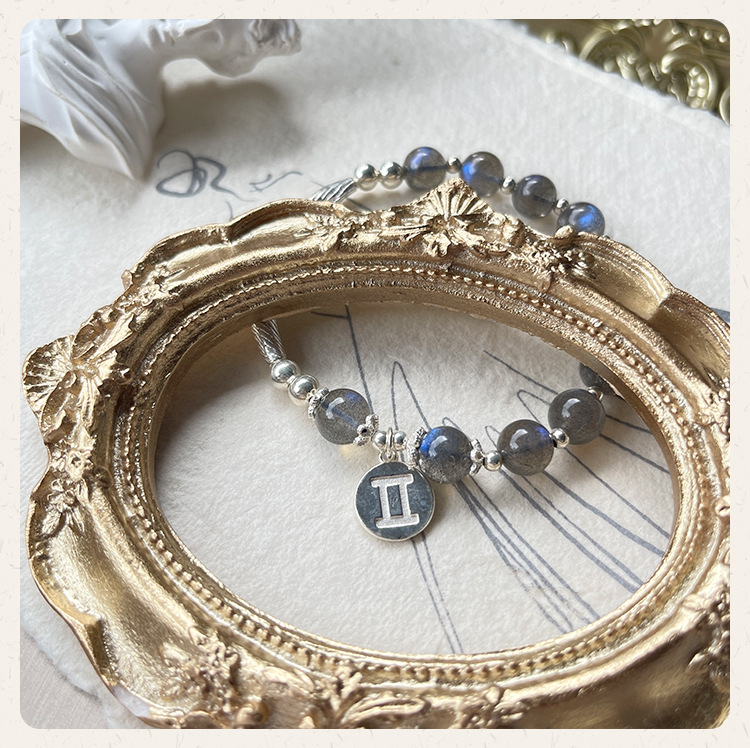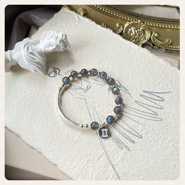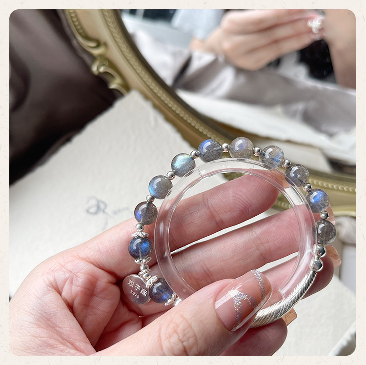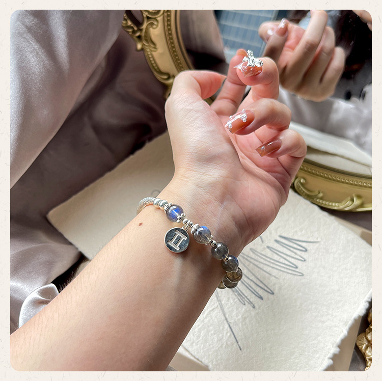Qiao En Jewelry Natural Crystal Bracelet Women's Gray Moonstone Bracelet Labradorite High Quality Blue Light Constellation Personalized Design