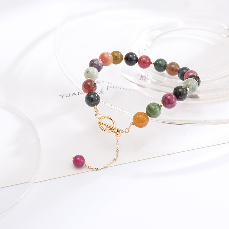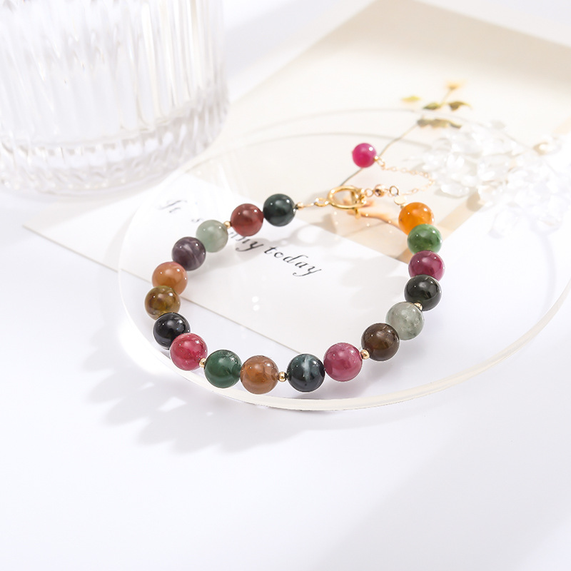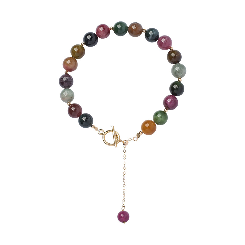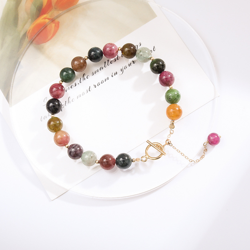 Qiaoen Natural Tourmaline Bracelet For Women14k Gold-filled Single Circle Watermelon Brazilian Crystal Bracelet Diy Jewelry