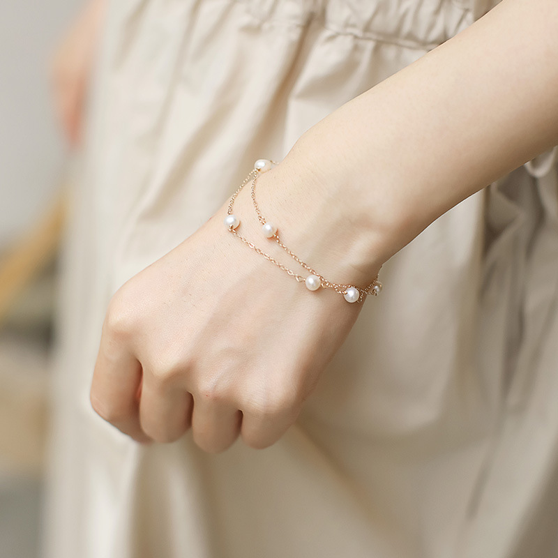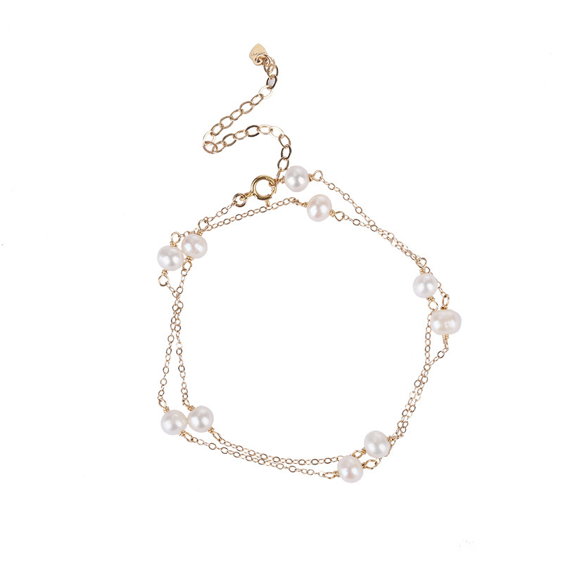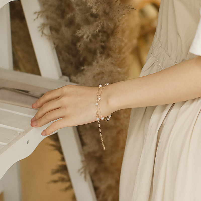 Natural Freshwater Pearl Bracelet14k Gold-covered Non-fading Double Layer Light Luxury Hand Jewelry For Women Simple Direct Selling