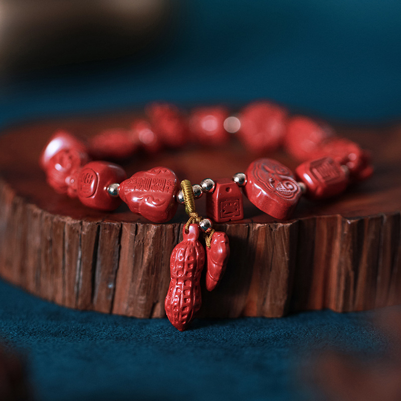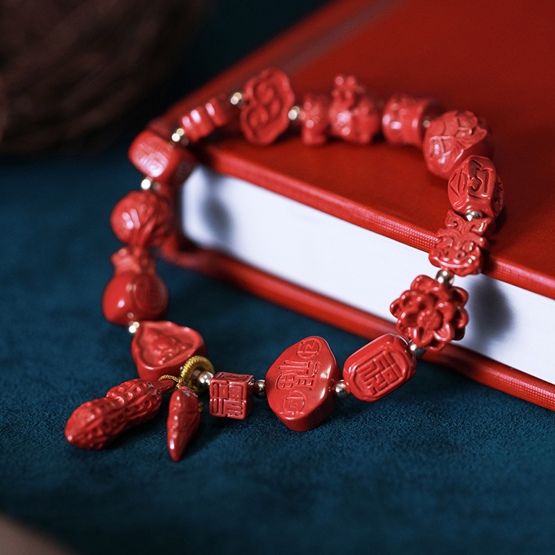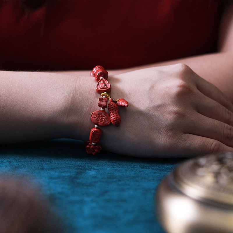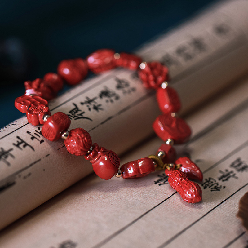 Qiao En Cinnabar Bracelet Women's Authentic Natural Imperial Sand Ethnic Style Hanfu Accessories Bracelet Jewelry