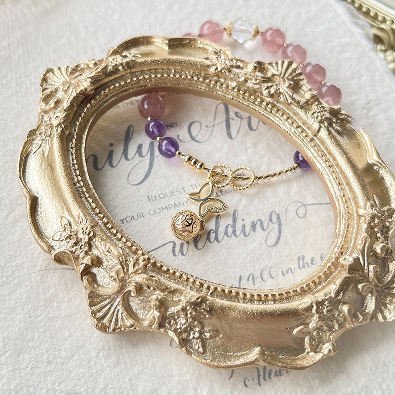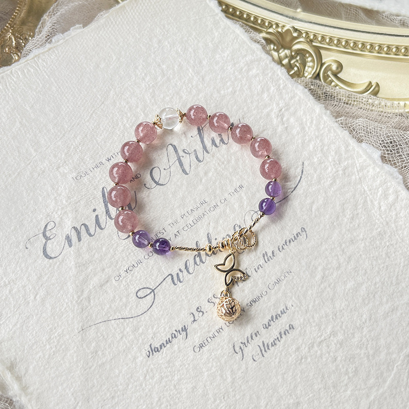 Qiaoen Light Luxury Niche Original Design Natural Crystal DIYBracelet Strawberry Crystal Butterfly Bracelet Direct Approval From The