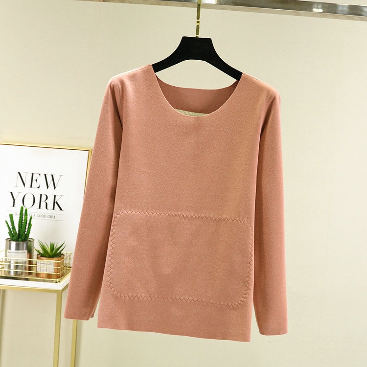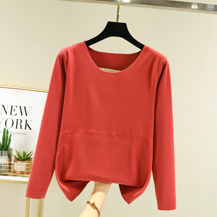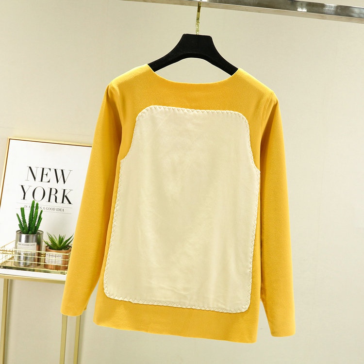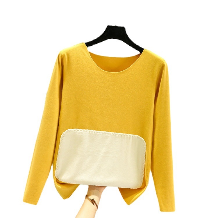 Double-sided German Velvet Round-neck Bottoming Shirt For Women With Belly Patch And Velvet Thickening Warm Top For Winter And Autumn.