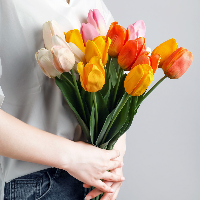 Tulips Feel Moisturizing High-end Artificial Flowers Nordic Style Living Room Restaurant Flower Arrangement Silk Flower Fake Flower Art Decoration
