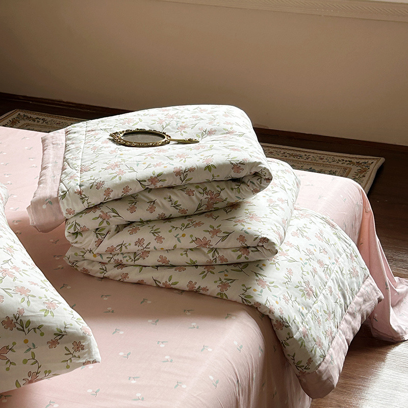 Xinjiang Cotton Style Cotton Summer Quilt Four-piece Setide And Outside Pastoral Small Floral Pure Cotton Summer Cool Quilt Skin-friendly Sleeping Naked
