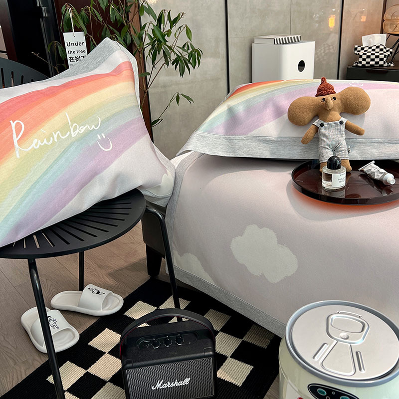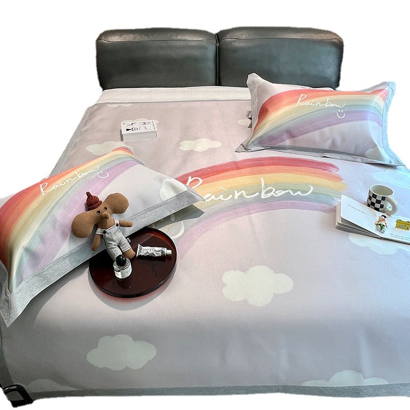 Summer High-end Light Luxury Digital Printed Ice Silk Cooling Mat Washable And Machine Washable Cool Cartoon Foldable Three-piece Set