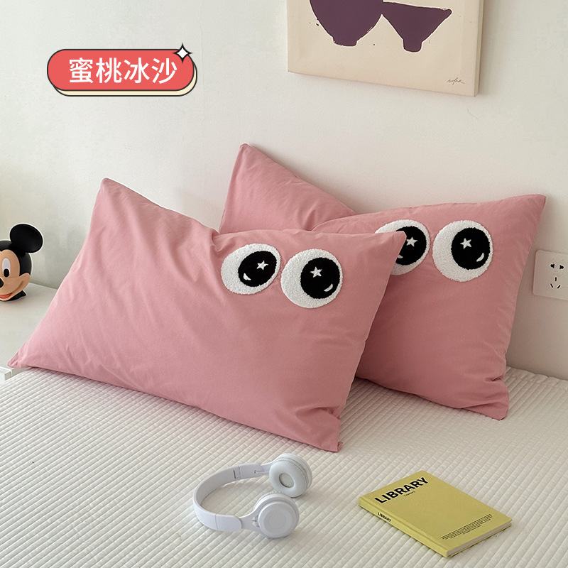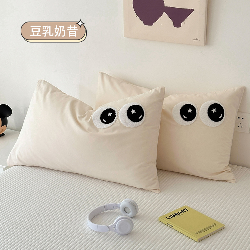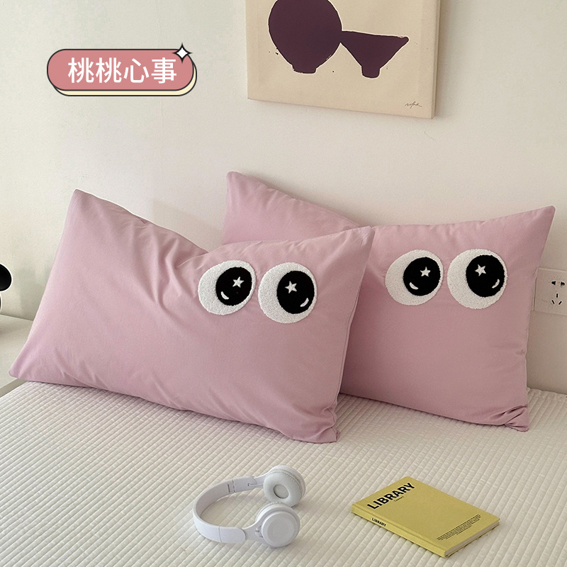 40 Count Washed Cotton Pillowcases,One Pair,One Cartoon Style Bedroom Dormitory Student Pillowcase And Leather