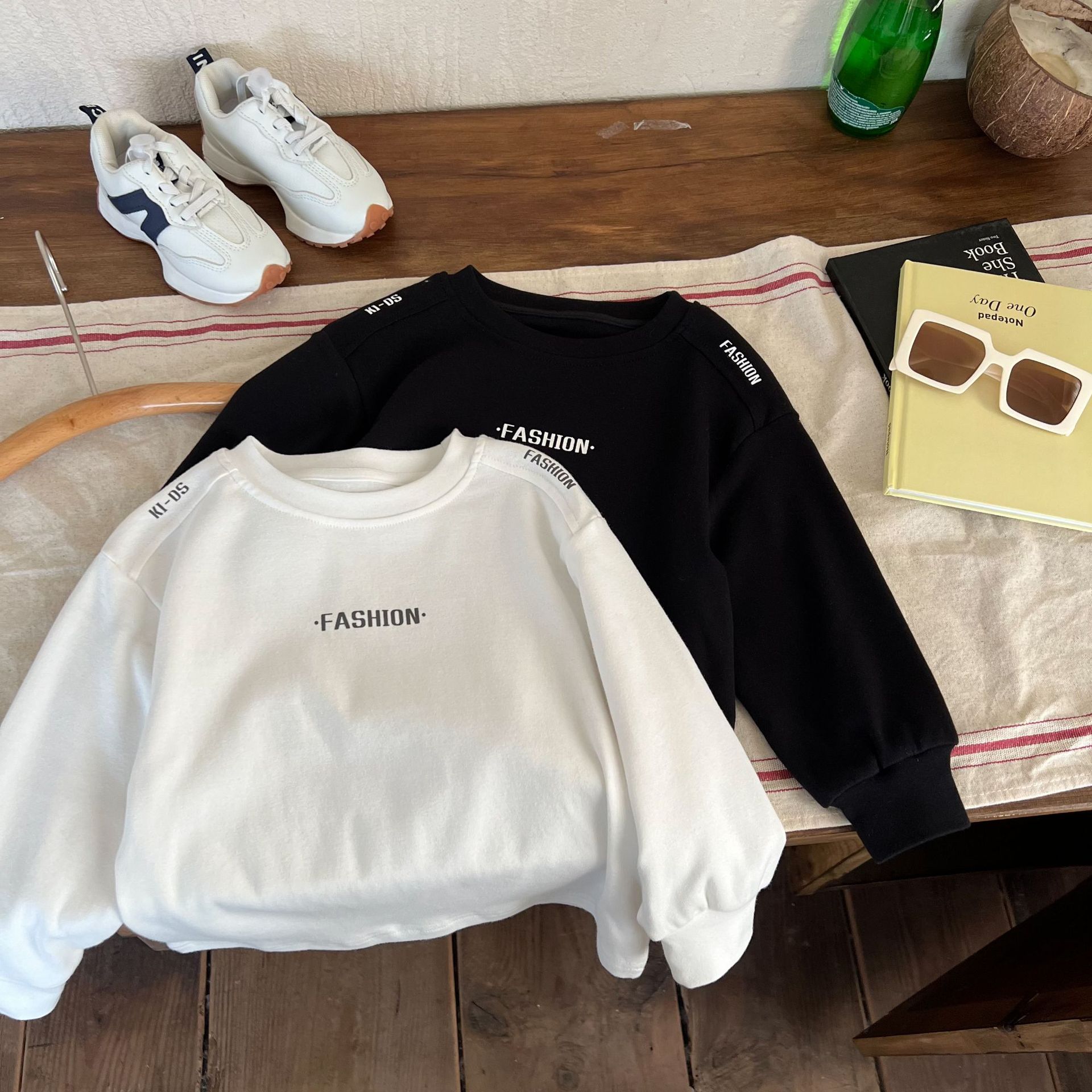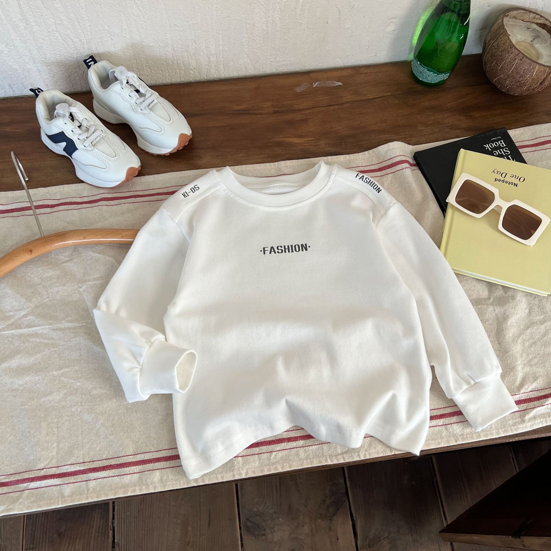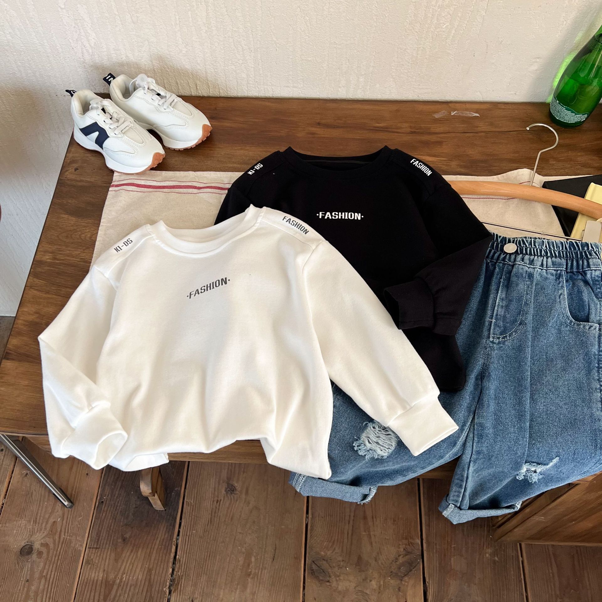Children's Round Neck Solid Color Letter Bottoming Shirt Boys Medium Collar Long Sleeve Spring Style Baby Boy Round Neck Topy