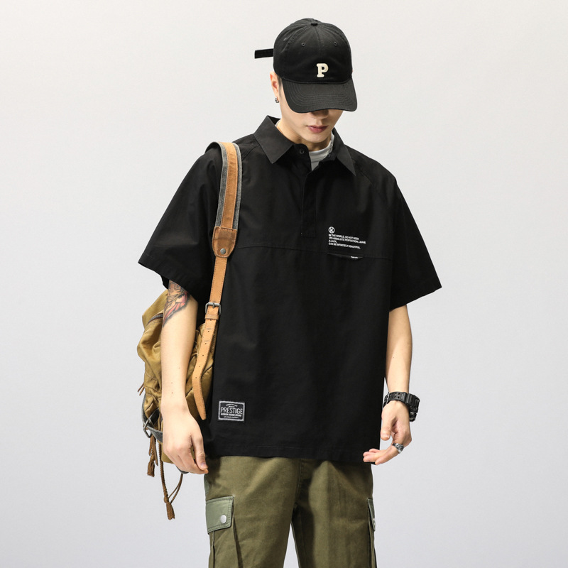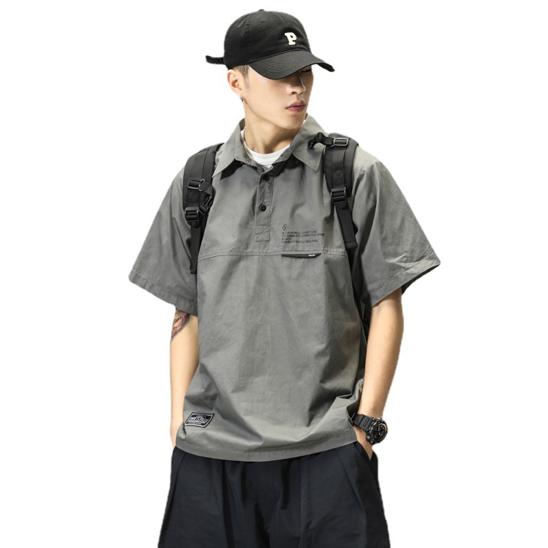 Workwear Handsome Polo Collar Shirt Men's Summer High-end Personality Handsome Short-sleeved T-shirty Brand Half-sleeved Shirt