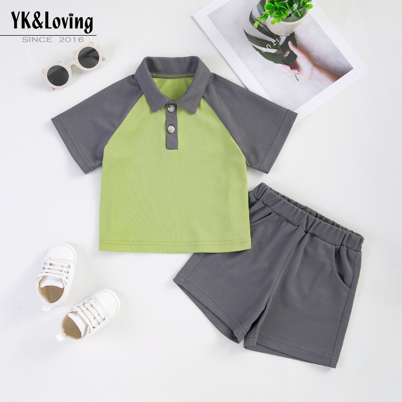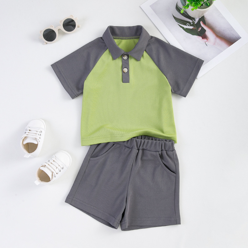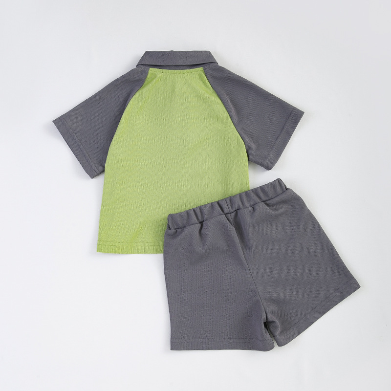 Boys Suit Summer Style Small And Medium-sized Children's College Style Polo Collar Short-sleeved T-shirt Loose Shorts Two-piece Set