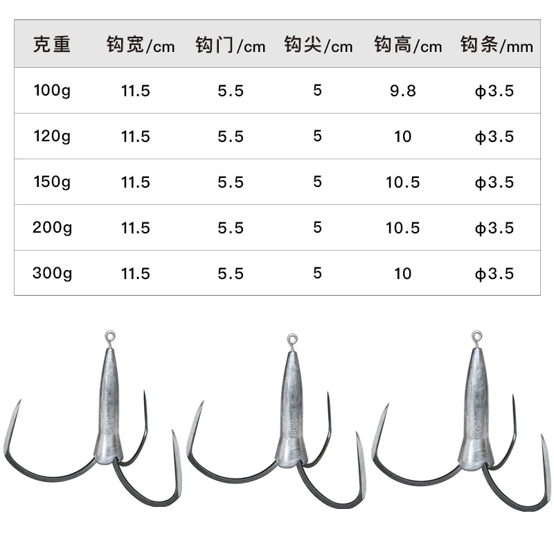 Weihe Lead Anchor Hook Three-hook Anchor Fish Hook Sharpened And Ground Barb-free Ice Fishing Winter Fishing Boat Hook