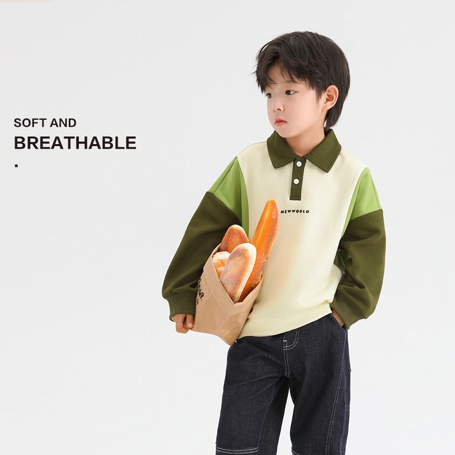 Children's Clothing Autumn And Winter Boys'Polo Shirt Long-sleeved College Kindergarten Children's Contrasting Color Loose Stand-up Collar Sweatshirt American Style
