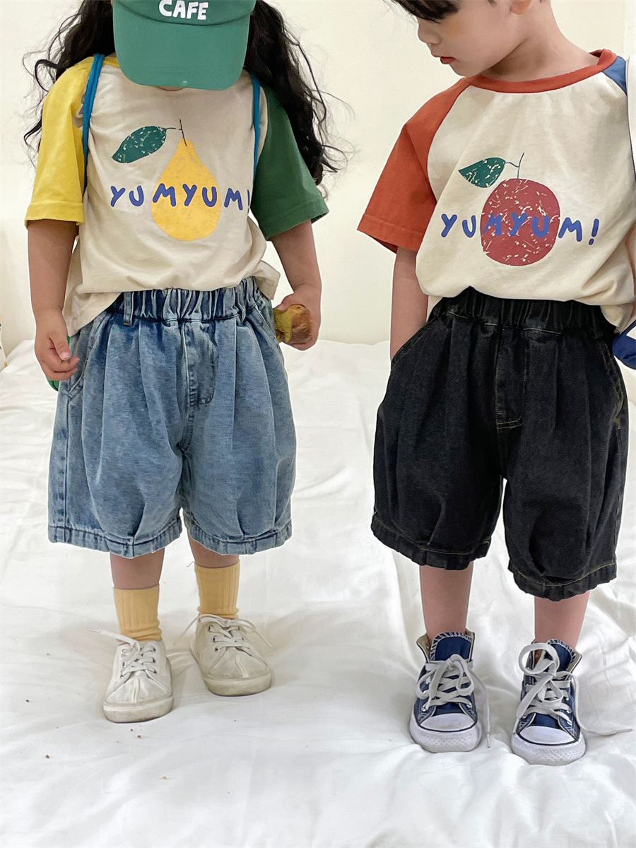 Jiaye Children's Summer Cotton Jeans For Men And Women,Stylish Five-quarter Pants,Loose Wide-leg Pants,Mid-pants
