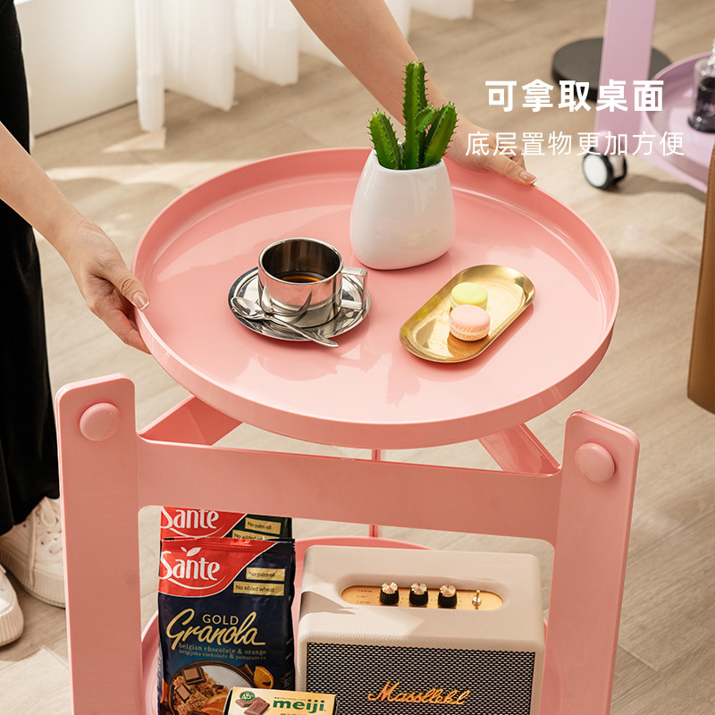 Pastoral Style Sofa Side Table Internet Celebrity Style Coffee Table Small Apartment Sideboard Universal Wheel Home Light Luxury Corner Table