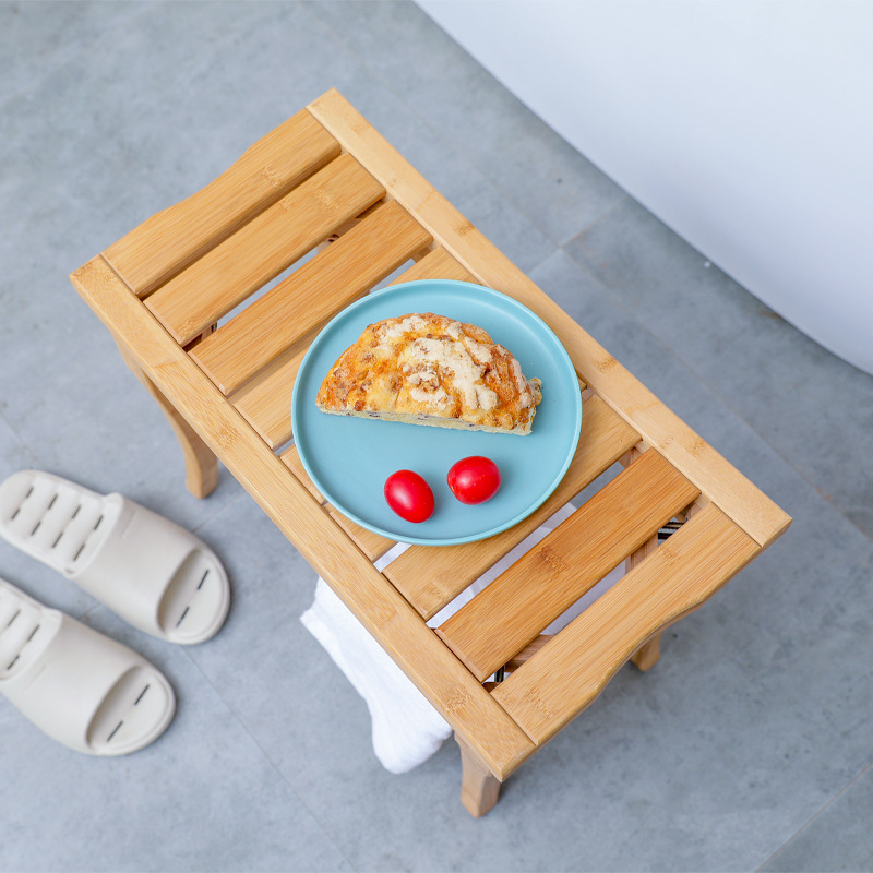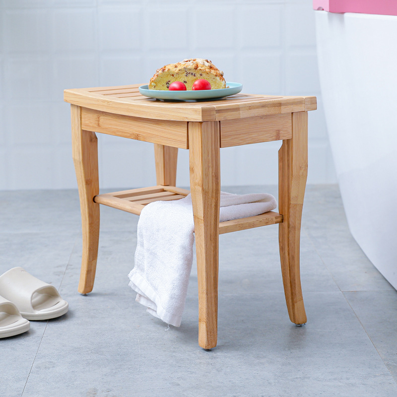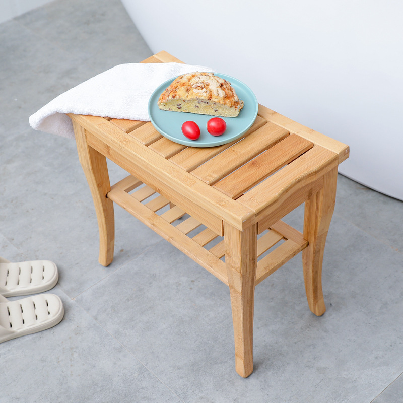 Bamboo Bathroom Stool Solid Wood Shoe Changing Stool Bathroom Rack Multifunctional Bench Simple Home Living Room Bathroom Square Stool