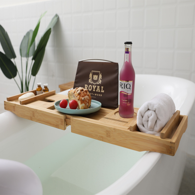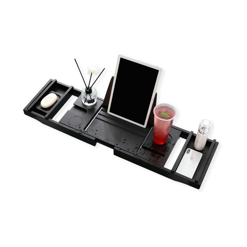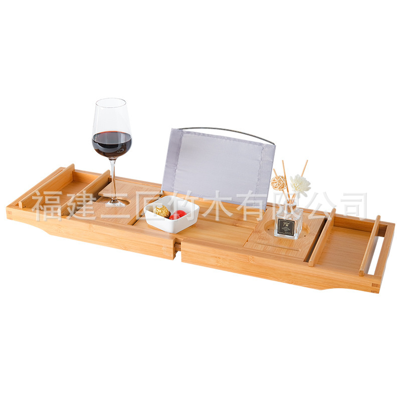 Direct Ready-made Bamboo Bathtub Storage Tray Retractable Bathtub Rack With Soap Dish Towel Rack
