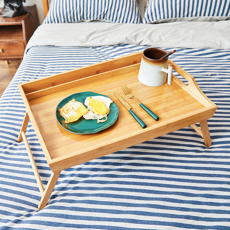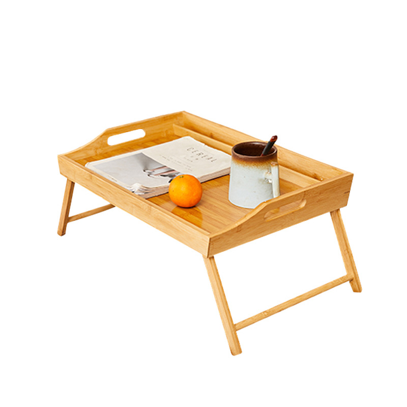 Bamboo Wooden Foldable Bed Table,Bamboo Tray With Mobile Phone Slot,Simple Small Table For Lazy People,Folding Table