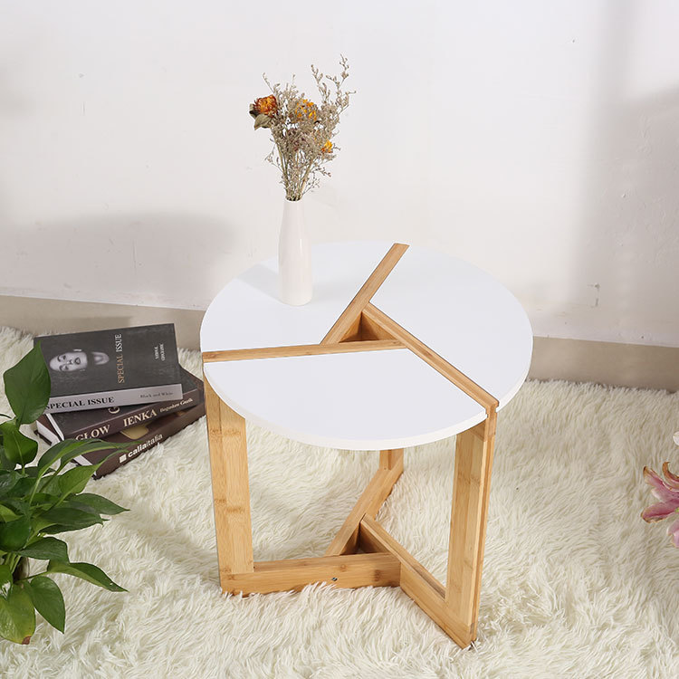 Simple Light Luxury Bamboo Coffee Table Bamboo Wood Home Living Room Round Balcony Small Coffee Table Creative Corner Table Straight Hair
