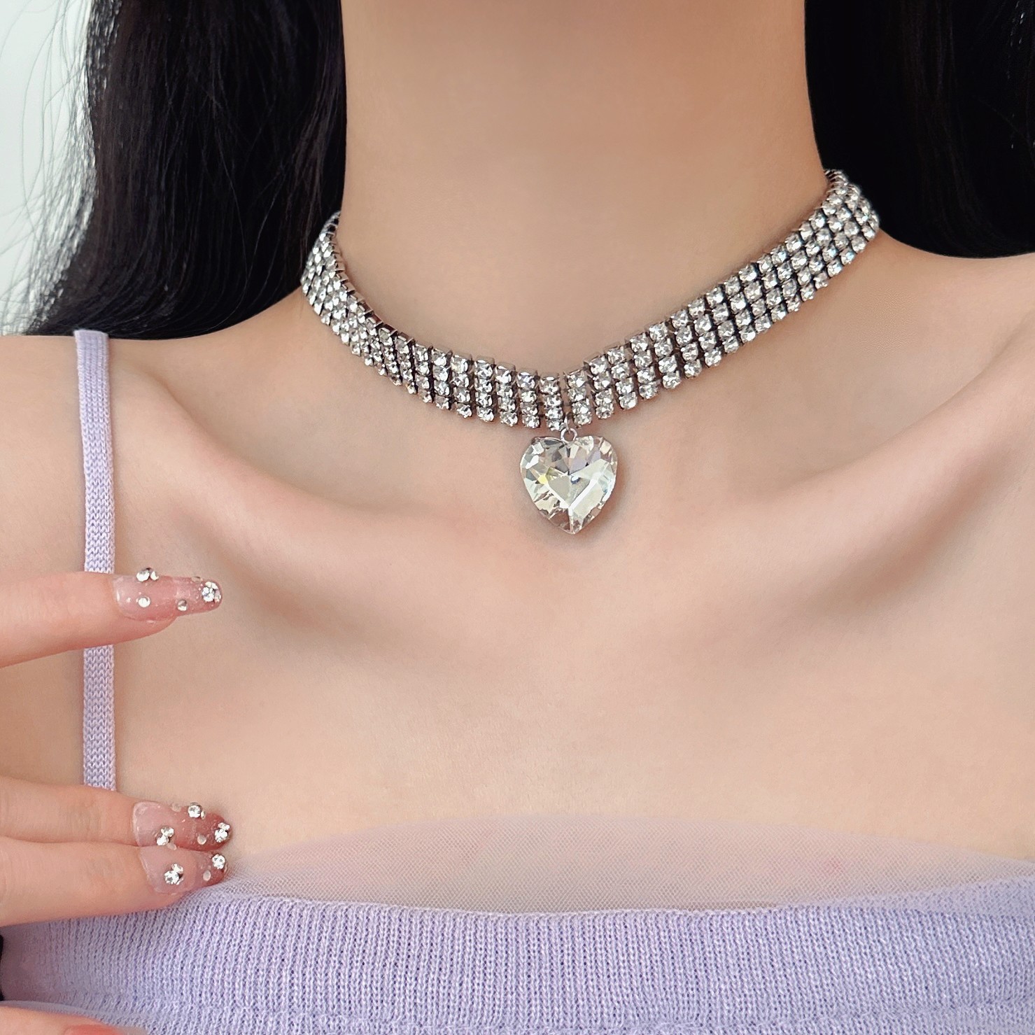 Zircon Love Full Diamond Necklace Light Luxury Niche Design High-end Peach Heart Clavicle Chain European And American Exaggerated Neck Necklace Hot Girl