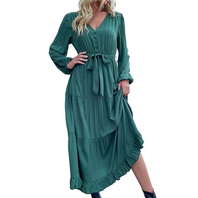 Independent Station Foreign Trade Autumn And Winter European And American Fashion Women's Long-sleeved Solid Color Dress