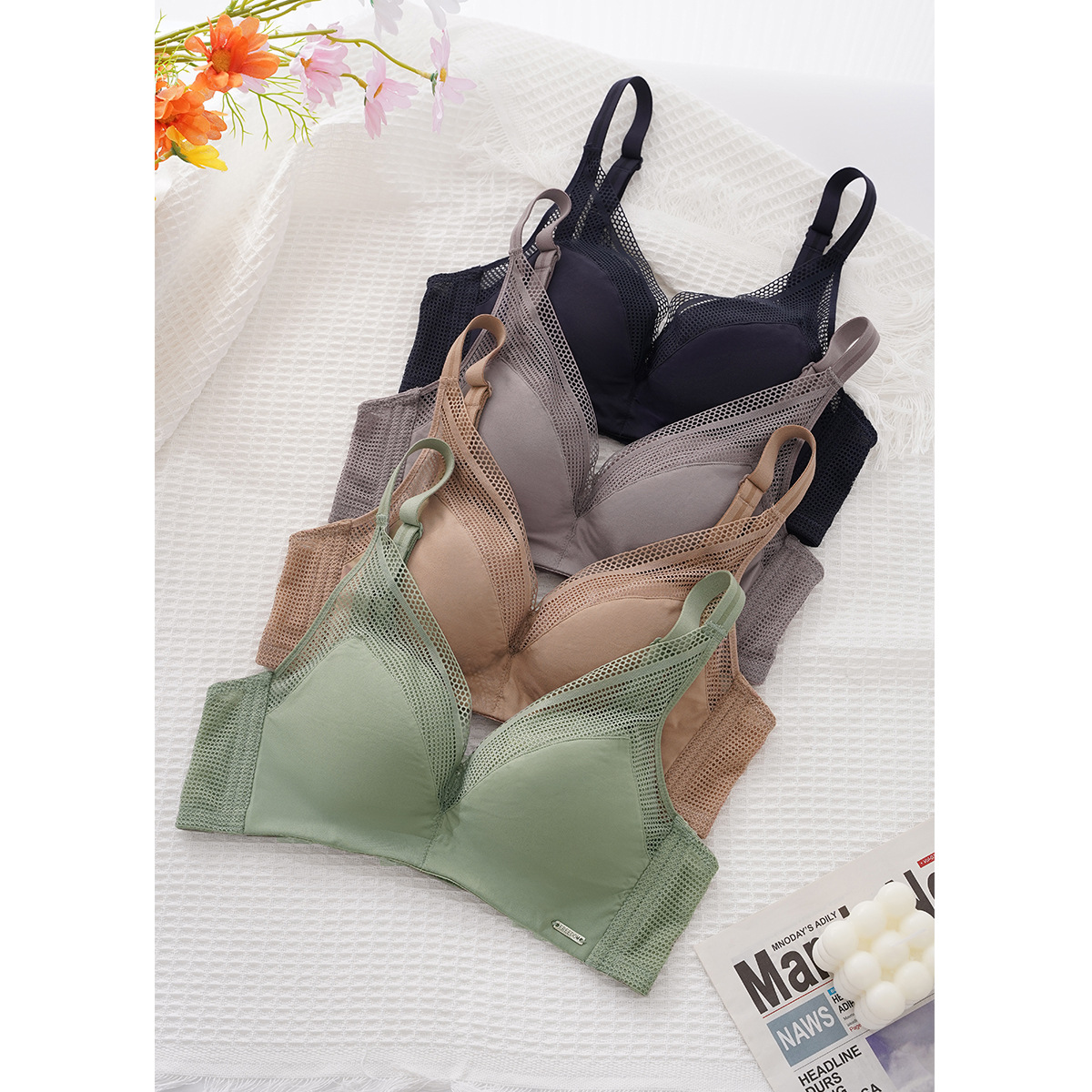 Spring And Summer Fashion Mesh Bra Super Soft Cloud Cup Bra Women's Breathable Mesh Side Underwear Sexy